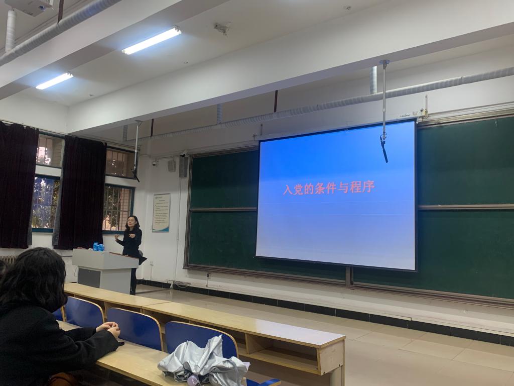 会议伊始,祝老师强调学员们在今后的党课学习中要牢记党的性质、党的宗旨,认真上好每一节党课。随后,祝老师为大家讲述了成为共产党员的基本条件和应该承担的各项义务。党员的义务和权利是一个相互联系,不可分割的整体,是互为条件、互相促进的关系。履行义务是行使权利的前提,行使权利是履行义务的保证。最后,祝老师提醒大家要端正入党动机,明确党员标准,争取早日成为一名优秀的共产党员。
