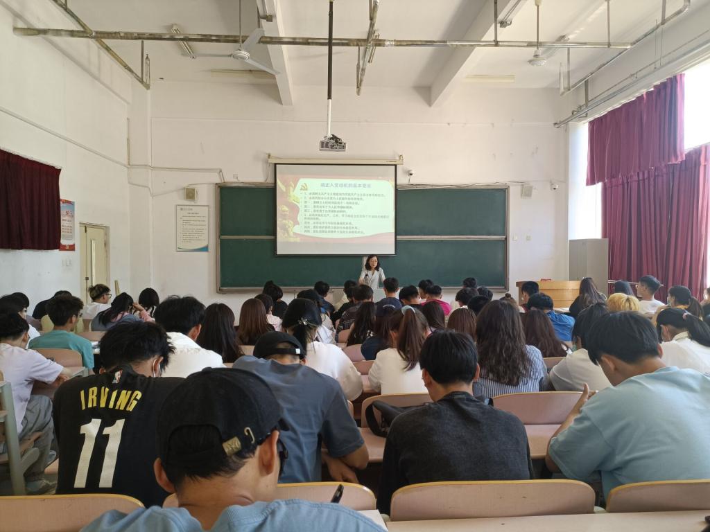 大会伊始,全体起立,奏唱国歌。祝箐老师从入党动机、党员的必备条件以及入党的要求和程序等方面,带领入党积极分子进行本次党课培训。同时,祝老师着重强调了学习党课的严肃性,要求入党积极分子在思想上引起高度重视,珍惜培训机会,以良好的精神面貌对待每一节党课。随后,祝老师对入党积极分子提出三点希望和要求:一是端正入党动机,树立为共产主义事业奋斗终生的信念;二是结合当前形势,深入学习党史,以党员标准在日常生活和学习中严格要求自己;三是要在工作、学习等各方面充分发挥先锋模范的带头作用,做到品学兼优,德才兼备。最后,祝老师指出,希望入党积极分子牢记初心使命,深化思想引领,强化党性修养,积极向党组织靠拢,争取早日成为一名合格的共产党员。