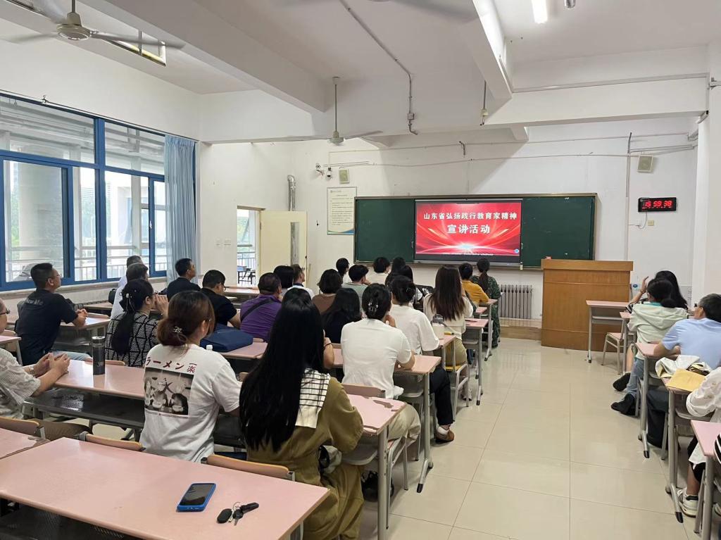 在第40个教师节来临之际,为深入贯彻落实党的二十大和二十届二中、三中全会精神、大力弘扬践行教育家精神,持续加强和改进新时代师德师风建设,引导广大教师躬耕教坛,潜心育人,9月6日,ladbrokes立博组织全体教职工集中观看“山东省弘扬教育家精神”宣讲活动。