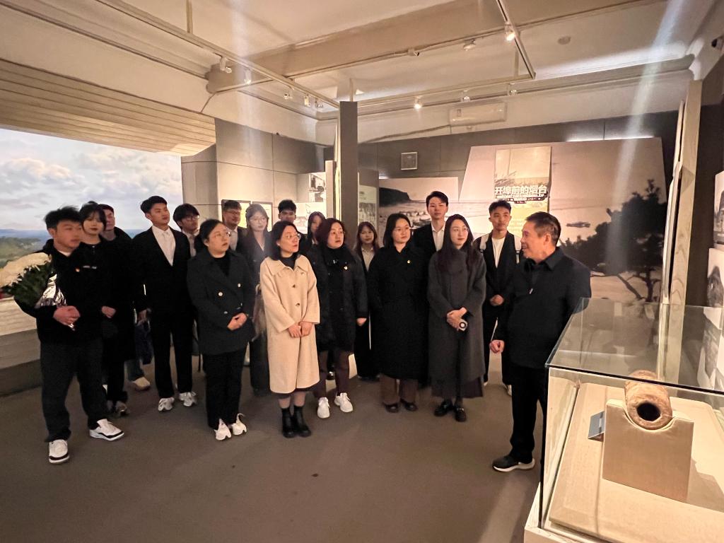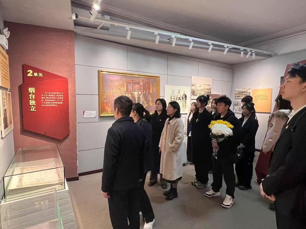活动伊始,师生们来到了美国领事馆旧址,历史的厚重感扑面而来。馆内陈列的历史资料、老旧物件,无声诉说着近代中国遭受的屈辱与沧桑。通过讲解员的细致解说,大家深入了解不平等条约签订背景,以及烟台人民在艰难时局中不屈抗争的过往。大家驻足凝视,深刻领悟到国家主权与民族独立的珍贵,进一步增强了民族自豪感和责任感。随后,师生们步入胶东革命史纪念馆,馆内丰富的史料、逼真的场景复原,重现了胶东地区波澜壮阔的革命画卷。大家依次参观了各个展厅,全面了解了胶东地区自五四运动以来,在先进思想引领下开展革命斗争的光辉历程。同时,郭寿生、邓兆祥、李之龙等革命先烈的英勇事迹和崇高精神,深深打动了在场的每一个人,先烈们用热血诠释信仰,用生命践行担当。参观结束后,王书记表示,团员同志们要将对英烈的缅怀之情转化为学习和生活的动力,在新时代展现新担当、新作为,永葆共青团员的先进性。