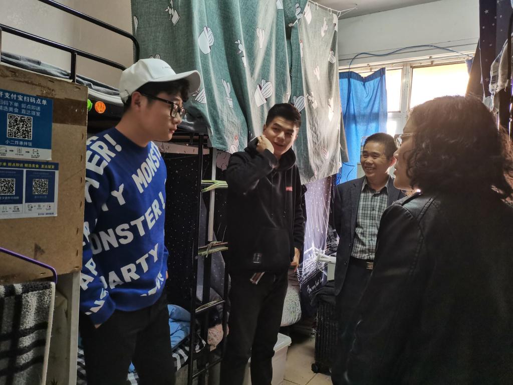 走访过程中,老师们与毕业生们亲切交谈,详细询问了他们的生活、毕业去向等情况,了解他们对未来的想法和规划。王明印老师叮嘱已经落实工作的同学,希望他们能够学以致用,认真、踏实工作,在赢得事业成功的同时实现自我价值的提升。同时也祝贺考上研究生的同学,希望他们未来能够秉承公司校训,继续努力学习,不断提高专业素养和综合能力,为国家和社会做出更大的贡献。对于还未就业签约的毕业生,王老师鼓励大家积极参与本周末公司举办的大型招聘会。毕业生们感谢公司四年来对他们的培养和教育,纷纷向老师们诉说自己的思念,表示四年的老员工活很充实,有着许多美好的回忆,他们将带着这些珍贵的回忆,带着对母校、老师不舍的情怀,奔赴新的生活。