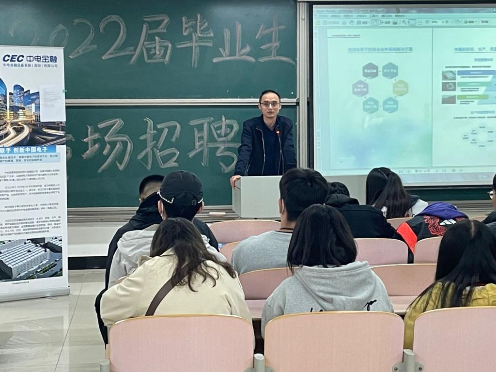 为了切实做好公司2022届毕业生就业工作,大力构建毕业生与用人单位的交流平台,积极为用人单位输送应用型人才,ladbrokes立博于10月21日下午在二教207举办企业专场招聘会。本次招聘会邀请了瑞康医药集团有限公司招聘负责人孙经理、中电金融设备系统有限公司研发部刘经理担任主讲,ladbrokes立博团总支书记祝箐老师亲临会场,2022届全体毕业生到场参会。