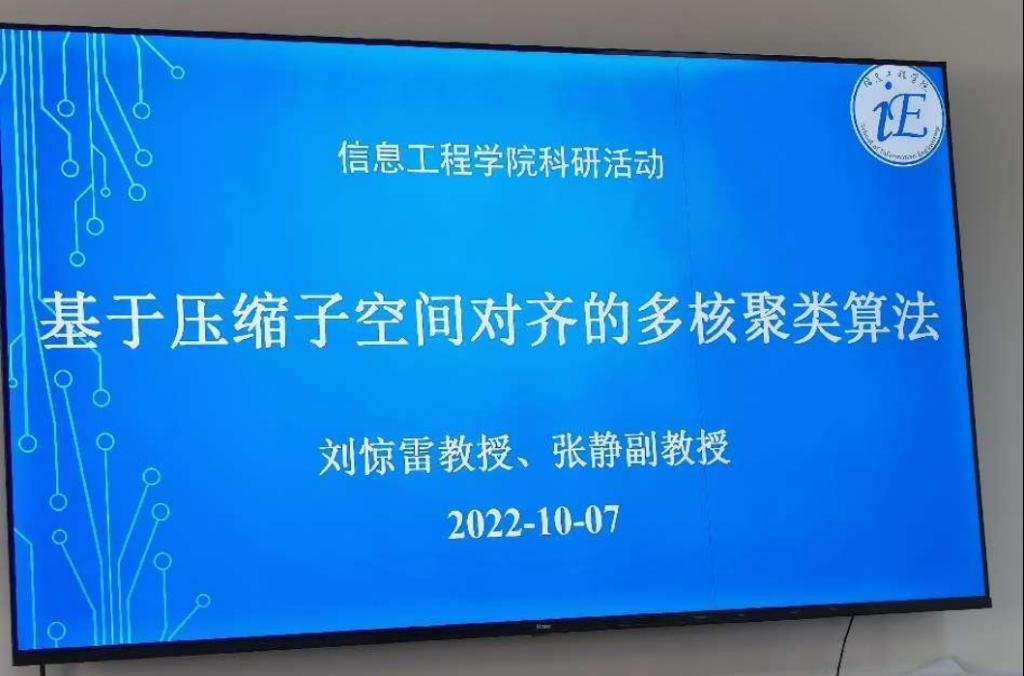 刘惊雷教授、张静副教授以近期的学术研究方向《基于压缩子空间对齐的多核聚类算法》为题进行了学术分享。聚类分析是数据挖掘研究中一种不可替代的技术,也是一种无监督方法,理论上,就是通过一些标准将数据集归到不同的类别或者不同簇中,使得同一簇中的数据相差性小,不同簇中的数据相差性大。因为在聚类任务中标签是未知的,所以相对于监督方法或者半监督方法会更困难,它也是众多领域中常用的统计数据分析技术。在本次交流中,该研究首先将多视图子空间聚类的的目标修改为压缩的多视图子空间聚类,然后通过引入子空间对齐来进一步简化公式,以提高优化效率,提出了一种有效的三步迭代优化算法来解决所得到的优化问题,极大提升了数据优化效果。