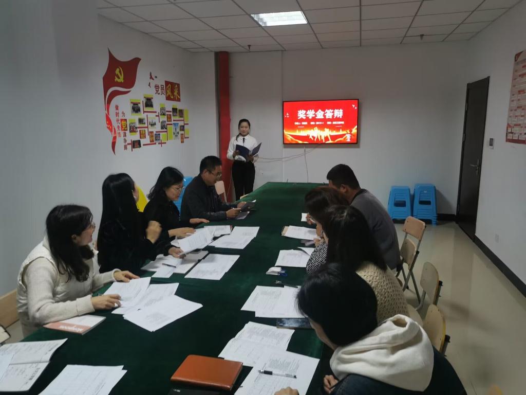 会议伊始,王书记宣读国家奖学金和省政府奖学金的评选条件、评审办法和评审程序,宣布答辩正式开始。随后,参加答辩的同学按照抽签顺序依次上台进行陈述、答辩,各位同学从本人简介、思想政治、学习成绩、科技创新、员工工作、文体素质等多个角度入手,展示了自己上一学年在学习工作中的成长与收获,彰显了公司学子刻苦努力、勤学奋进的良好风貌。经过激烈的角逐,拟推荐秦帅、朱春喜为国家奖学金获得者,刘玉珠、郭新健为省政府奖学金获得者。
