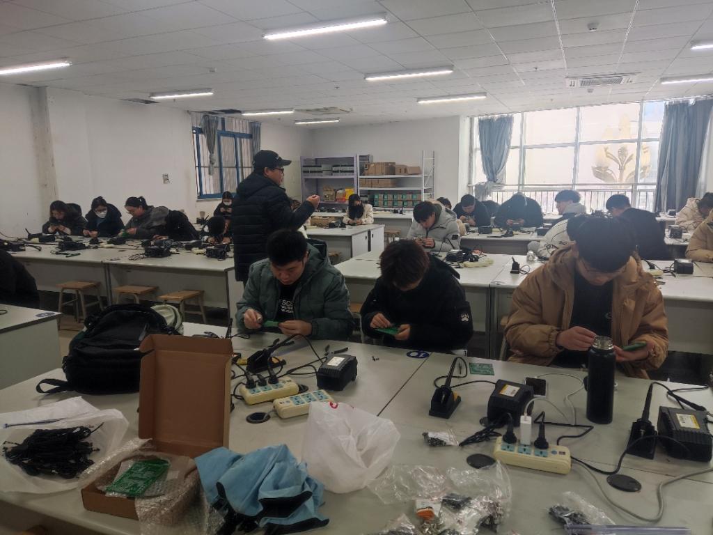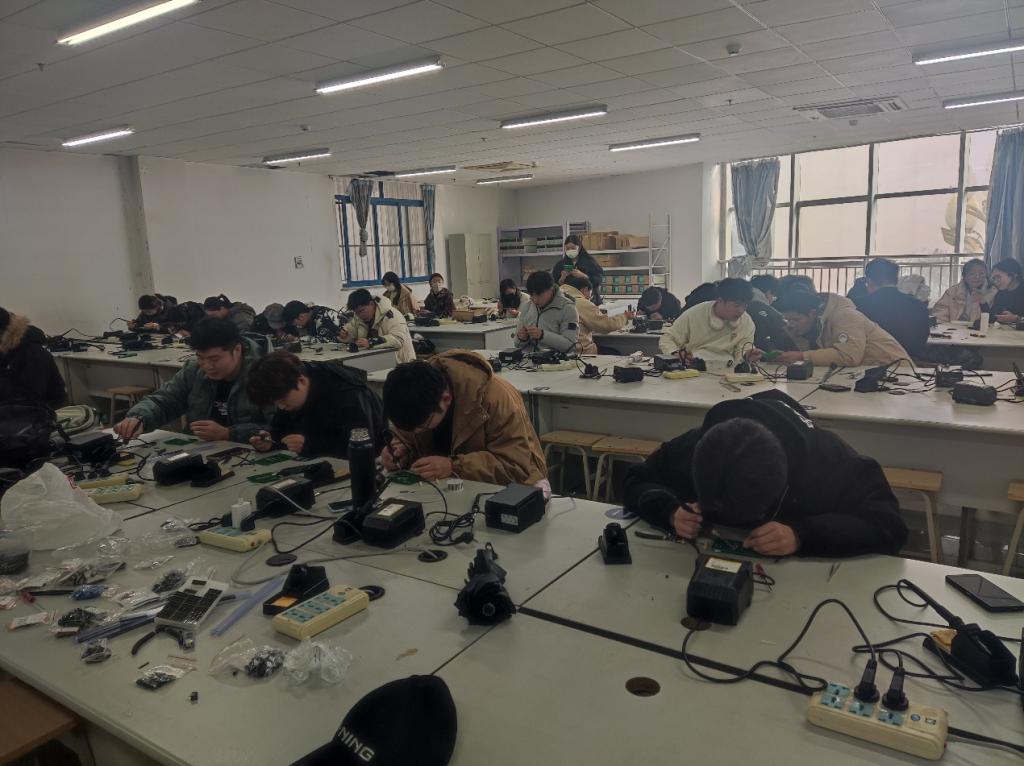 活动分为三个环节:设计、焊接、调试。首先,在刘晓明老师的指导下,部分员工完成了电路、原理图以及PCB板图的设计。同学们将之前在《电子线路设计与实践》课程中学到的理论知识应用于实践,尝试将设计成果转化为成品,激发了对PCB设计的浓厚兴趣。其次,三十多名员工积极参与了实验设备的焊接与调试,学习了常用电子元件的特性,锻炼了焊接、调试、测试等专业技能,进一步巩固了在《电子工艺实习》、《单片机原理及应用》等课程中所学的知识。设计的实验设备将被应用于单片机课程的学习和课程设计中,配合项目式教学的开展。
