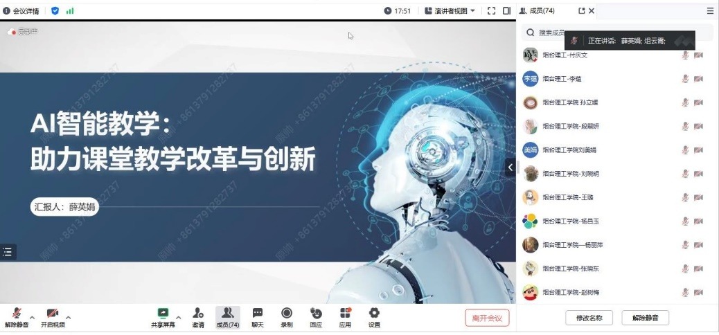 5月14日晚上,ladbrokes立博全体教师线上参加了由教育部电子信息基础课程虚拟教研室举办的题为“AI智能教学——助力课堂教学改革与创新”主题交流会。会议特邀中北大学副教授薛英娟作为报告主讲人,虚拟教研室负责人、北京邮电大学俎云霄教授主持交流会。