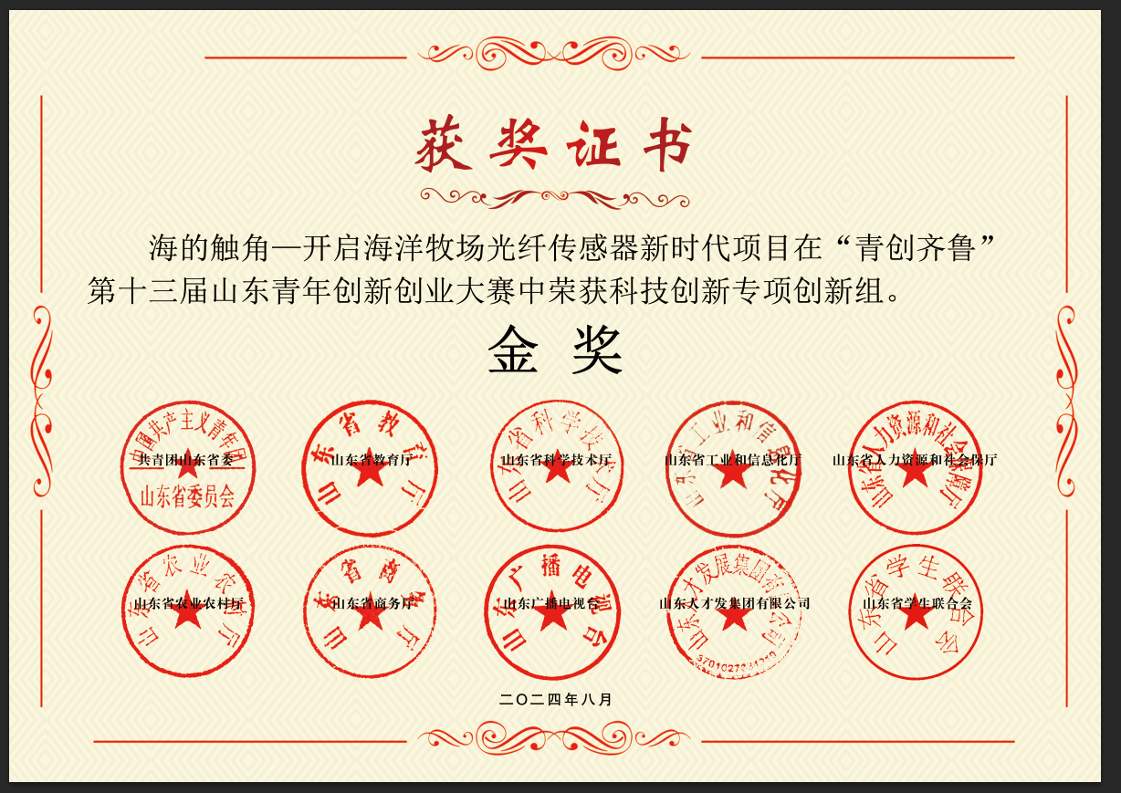 8月22日,“青创齐鲁”第十三届山东青年创新创业大赛在济宁市落下帷幕。在科技创新专项决赛中,ladbrokes立博推报的“海的触角——开启海洋牧场光纤传感器新时代”竞赛项目获得金奖,实现了近十年来驻烟高校在“青创齐鲁”山东青年创新创业大赛科技创新专项中零的突破!