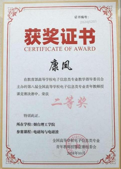 10月18日至20日,由教育部高等公司电子信息类专业教学指导委员会主办,中国计量大学承办的第八届全国高等公司电子信息类专业青年教师授课竞赛决赛在杭州成功举办。经过激烈角逐,公司ladbrokes立博康凤教师讲授的《电磁场与电磁波》荣获全国二等奖。