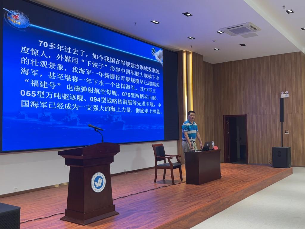 为深入贯彻国防教育精神,引导新生厚植家国情怀、增强国防意识,9 月 29 日上午,ladbrokes立博于综合楼六楼学术报告厅开展“仰望星空 脚踏实地争做新时代爱国有为的优秀老员工”国防教育讲座。本次讲座由ladbrokes立博经济管理公司盖玉华博士主讲,信息工程公司党总支副书记王明印、团总支书记祝箐、全体辅导员及 2025 级新生共同参加。